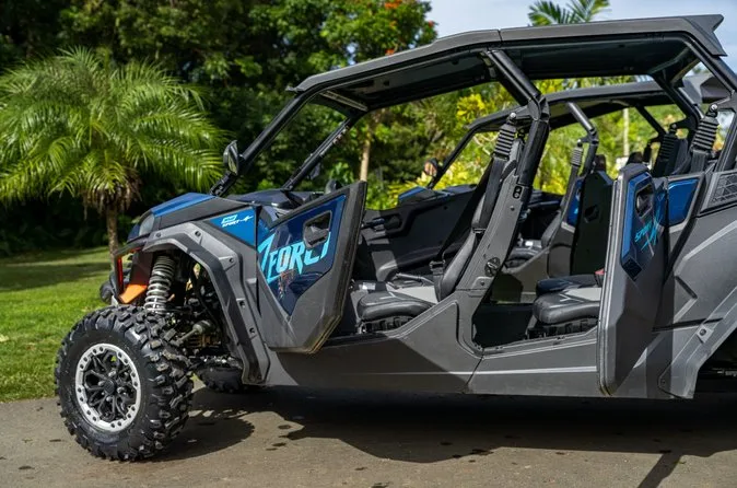 You can choose between 2-seater or 4-seater UTVs; up to 4 participants per unit.
