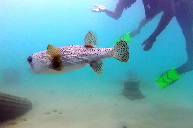 The first few breaths underwater felt weird — kind of like learning to ride a bike again, but wetter and with more flippers involved. Carlos kept signaling “okay?” every few seconds. I nodded, even though my brain was still catching up. Suddenly there was this greenish blur — a sea turtle just gliding past like we weren’t even there. I nearly swallowed half the ocean trying to point it out to my buddy (who definitely saw it). The marine park was full of these small flashes of color: yellow fish darting around old statues, sunlight slicing through the water in strips.