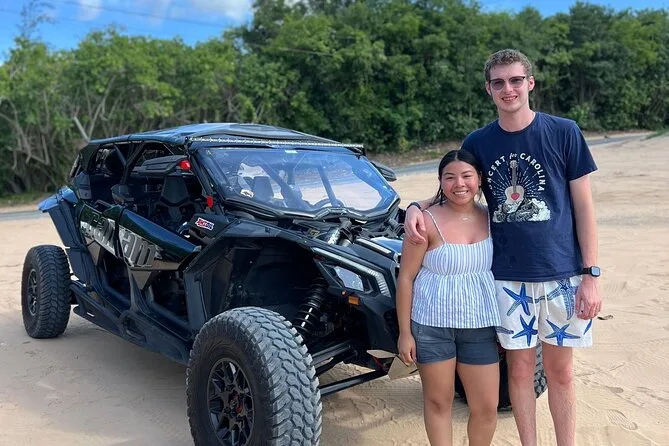 There’s this moment when you’re bouncing along in the Can-Am UTV, sand flicking up behind us, and the sky over Isla Verde is just this impossible blue — I remember thinking, “Okay, so this is what freedom smells like.” Our guide (I think his name was Miguel?) kept grinning in the rearview mirror and pointing out tiny things we’d never have noticed: a fisherman waving from a little boat, kids racing kites near the water. The engine hum sort of faded into the background after a while. You could hear music drifting from somewhere — maybe one of those beach bars in Piñones? It mixed with the smell of fried dough and seaweed in a way that just… felt like Puerto Rico.