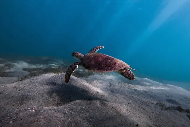 Your day includes use of all snorkel equipment (mask, fins), USCG approved life jacket if needed, bottled water whenever you want it, guidance from a certified instructor who keeps things safe but relaxed—and after your swim with turtles in San Juan’s bay, you’ll get a free underwater video as a souvenir before heading back up the beach together.