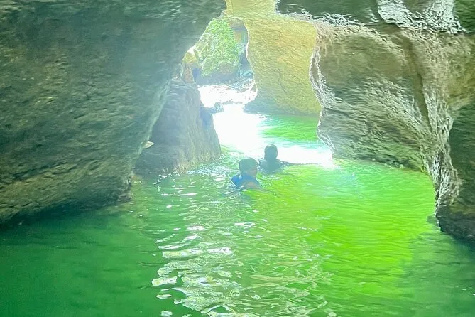 You’ll swim through dark passages with echoes and see ancient Taíno markings along stone walls.