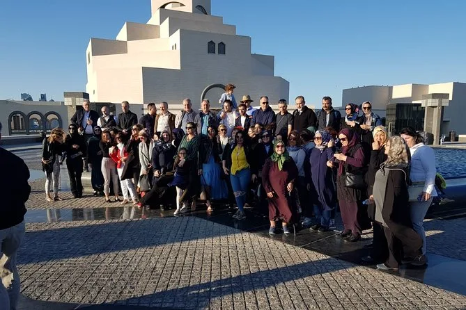 The tour visits Souq Waqif, State Grand Mosque, The Pearl-Qatar, Katara Cultural Village, Corniche waterfront, and National Museum of Qatar.