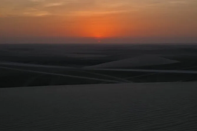The real adrenaline hit came after: dune bashing in a 4x4 out towards the Inland Sea. It’s loud — tires hissing on sand, everyone half-laughing half-yelling as we went over these ridiculous drops. At one point we stopped so people could try sandboarding (I wiped out immediately; sand gets everywhere). But then there was this quiet moment: just standing at the top of a dune looking down at this impossible sweep of empty land all the way to Saudi Arabia. The light gets sharp out there in late afternoon. I still think about that view sometimes — how small you feel in all that space.