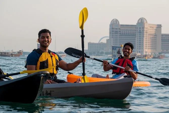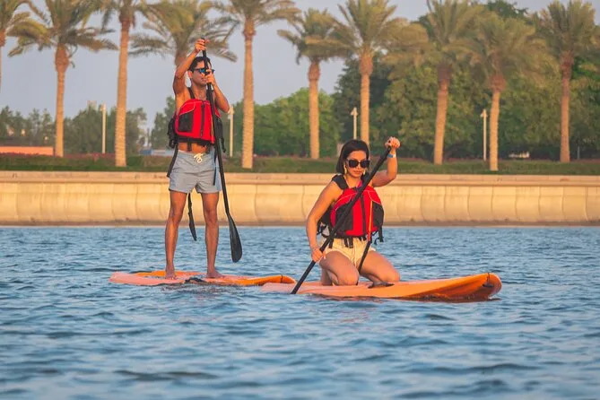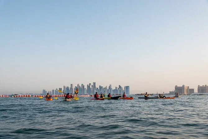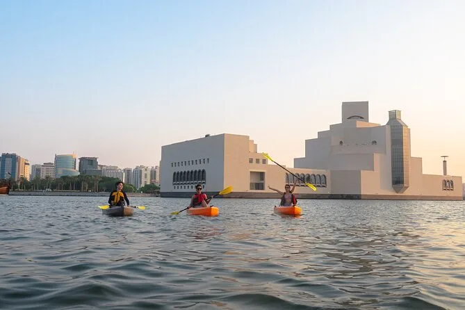 You’ll paddle through calm waters at MIA Park with Doha’s skyline all around you, guided by locals who know every angle worth seeing. Expect laughter during safety briefings, help with photos (so no awkward selfies), and cold drinks waiting when you finish. It’s peaceful but lively — perfect if you want to feel both part of the city and away from it for an hour.