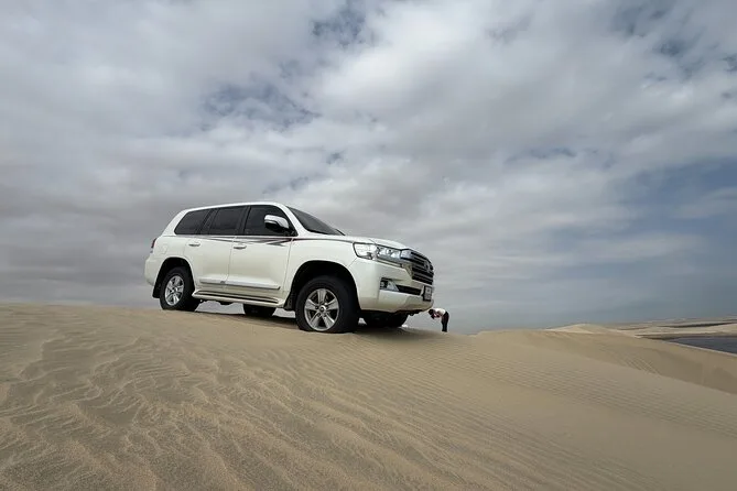 Your day includes private transportation with air conditioning and WiFi onboard, bottled water plus coffee or tea breaks along the way, a certified English-speaking desert guide who knows every shortcut through those dunes, all pickup and drop-off services from Doha hotels—and if you want to try it—camel rides are available too before heading back home sandy but happy.