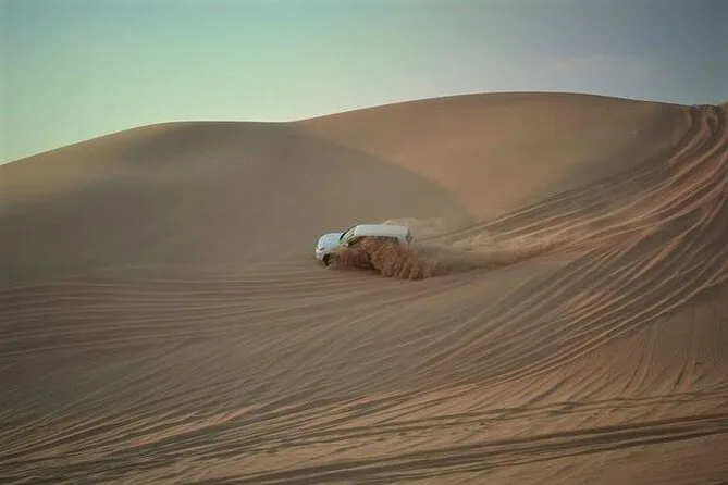The tour includes about two hours of dune bashing plus time for camel riding, sandboarding, photo stops, and transfers from Doha.
