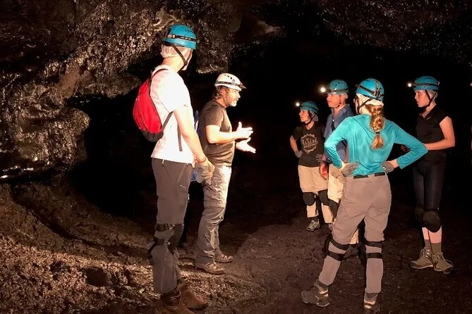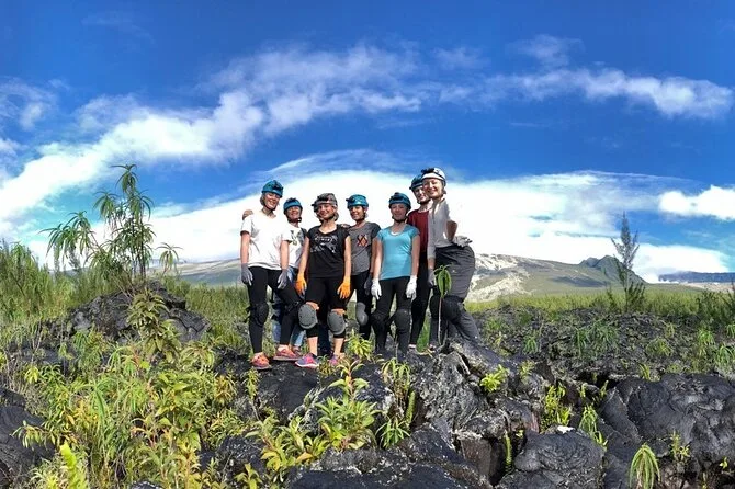 Your day includes all safety gear—helmet, gloves, knee pads, and a headlamp—plus guidance from an instructor who shares volcanic facts as you walk across old lava fields and explore inside Reunion’s unique lava tunnels together.