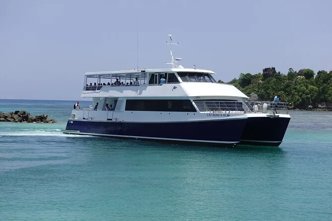 Your booking includes your confirmed Cat Rose fast ferry transfer between Praslin and La Digue (or return), with ticket pickup right at either jetty before departure. You’ll have space for both cabin bags (up to 7kg) and checked luggage (up to 30kg), plus support for families with infants or travelers needing wheelchair access—all handled smoothly by local staff before you set off across that narrow stretch of sea.