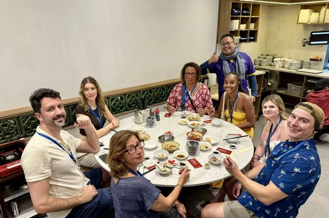 Your evening includes an English-speaking local guide leading you through iconic neighborhoods, nine to ten different local foods and drinks across several stops (including dinner), plus commentary on history and culture as you walk between venues—no need to worry about ordering or finding your way back afterward.