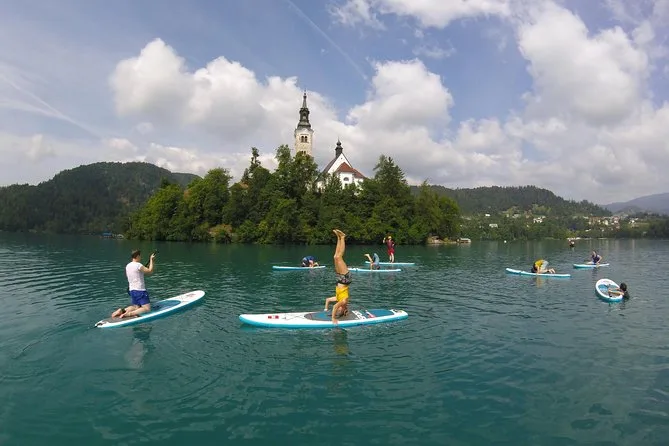 Your day includes an introductory stand-up paddle boarding lesson with a local guide on Lake Bled, all necessary SUP gear (board, paddle, safety leash), wetsuits if needed for spring or autumn sessions, fun group games on the water near Bled Island, photo memories captured by your instructor so you don’t need your own camera, plus stories and tips about Slovenian culture throughout your two-hour adventure.