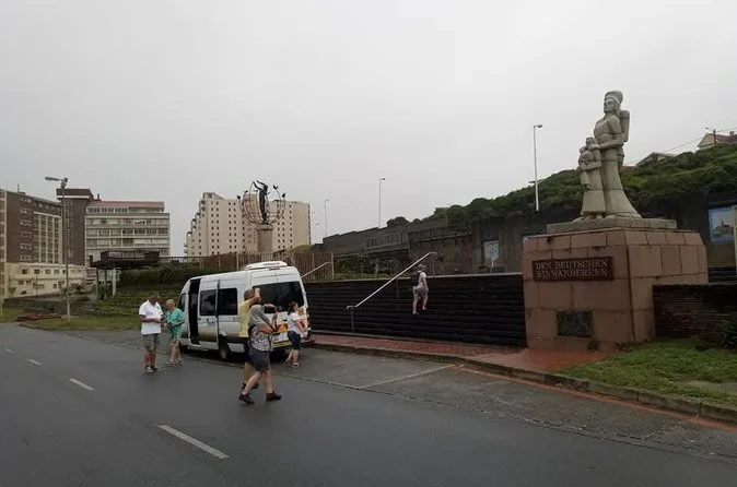 Your day includes pickup in an air-conditioned vehicle with your local guide leading visits to City Hall, East London Museum (with entry), Nahoon Point educational center for ancient footprints, Biko Bridge, Hero's Park, scenic stops along the esplanade beachfront and harbor view area, plus time at a shop offering handmade crafts before returning comfortably at day's end.
