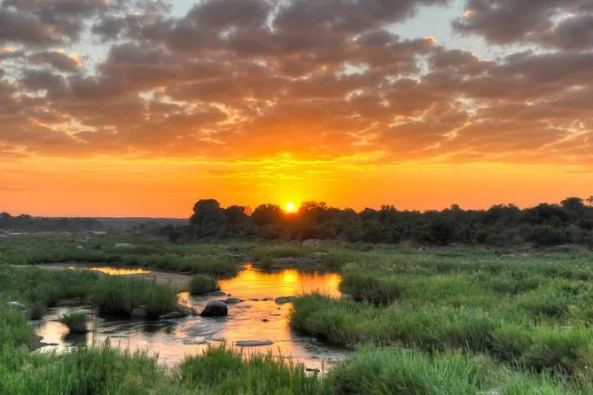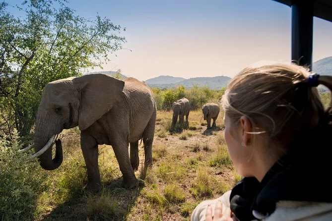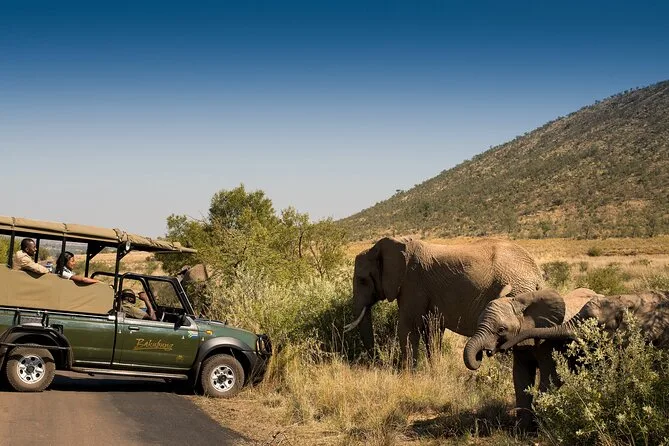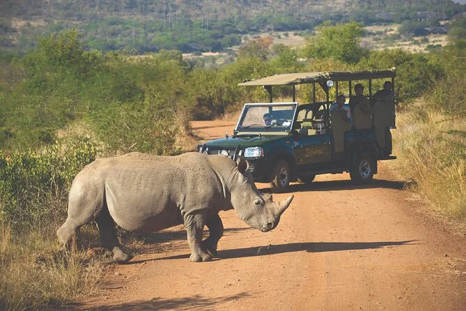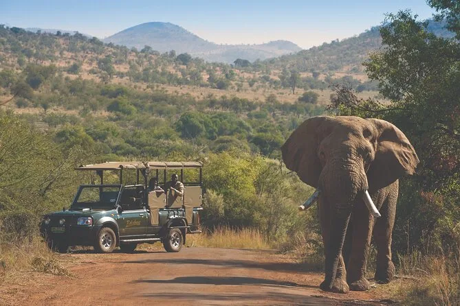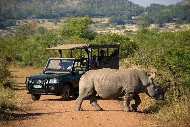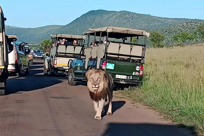 Early morning drive from Johannesburg, open safari vehicles, wildlife close-ups, lunch overlooking the waterhole, afternoon game spotting and back before sunset
