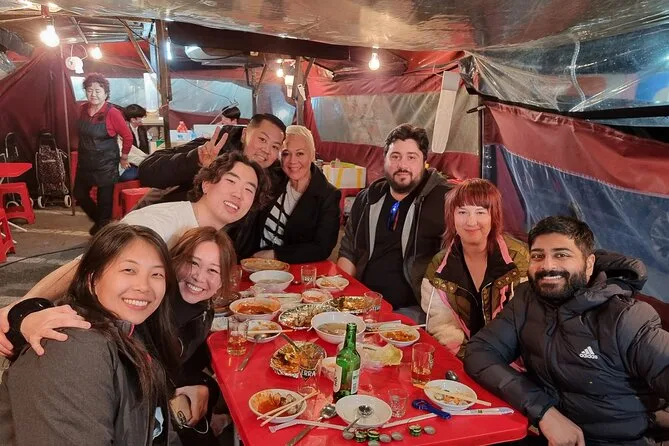 Your evening includes all fees and taxes plus a round of drinks at the last stop with your host. You’ll explore on foot through Seoul’s best food neighborhoods—from Gwangjang Market to tucked-away bars—with plenty of chances to taste local dishes and rice wine along the way before heading off on your own late at night.