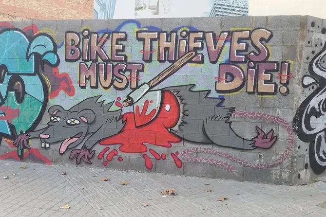The route took us through Parc de la Ciutadella, past this wild fountain with gold horses on top. Sunlight flickered through palm leaves; I almost ran over a pigeon because I was staring up at the statues (oops). We rode along cycle lanes most of the time, so even my friend who’s nervous in traffic felt okay. At some point we passed by what used to be factories — Lucie called it “la Manchester catalane” — but now there’s street art everywhere and people drinking coffee outside old warehouses. The city really does keep changing under your wheels.