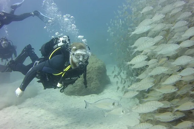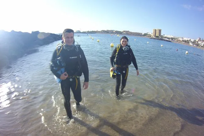 Your day includes hotel pickup and drop-off within 6 miles of Costa Adeje, all SCUBA equipment rental, bottled water to keep you hydrated after salty swims, full instruction from a professional local guide throughout both practice and open water sessions, plus all fees and taxes covered so there are no surprises when you show up ready to try something new.