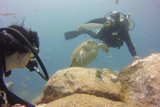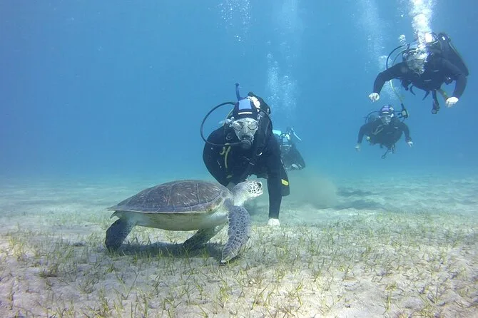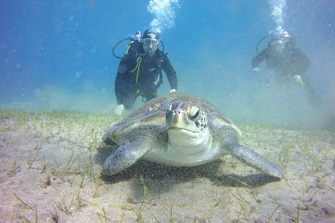 You might spot sea turtles or rays during your open water dive, though sightings aren’t guaranteed.