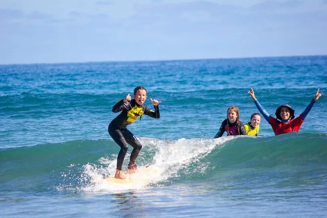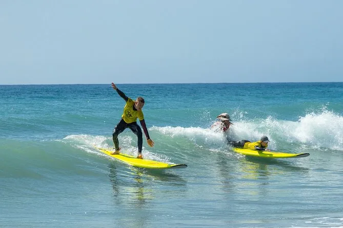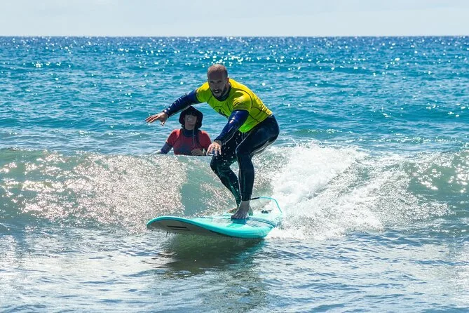 You’ll join a small group in Gran Canaria for hands-on surf lessons right on Playa del Inglés, with friendly local instructors guiding you through every step — from theory to catching your first wave. Expect plenty of laughs, practical tips tailored to your level, two water sessions with breaks for fruit and water, plus free action photos to remember it all.