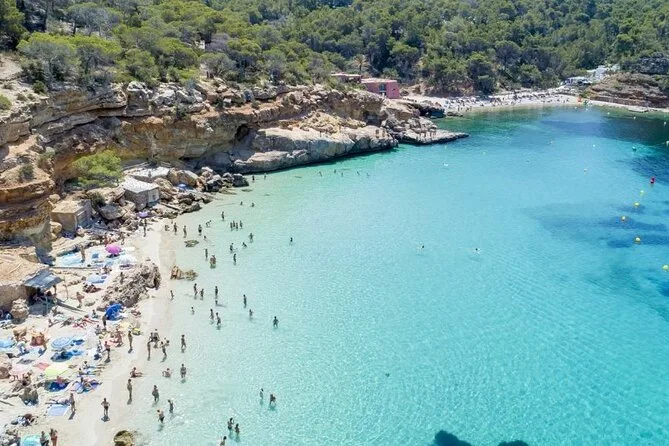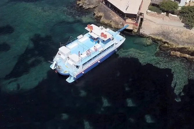 The tour includes a stop at Ibiza's only aquarium inside a sea cave near San Antonio.