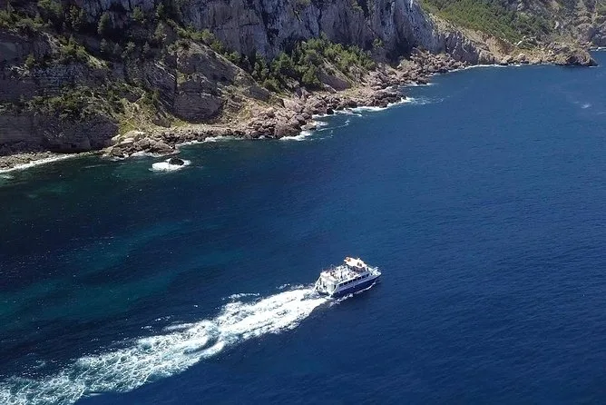 The boat departs from San Antonio Harbour on Ibiza's west coast.