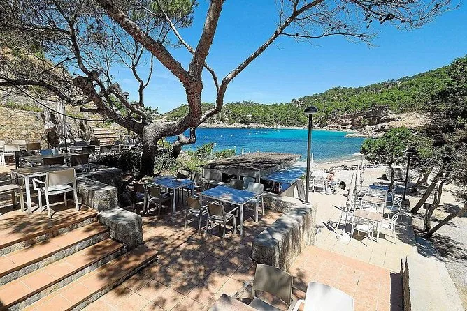 The boat finally docked right in front of Cala Salada around 1:30. You can stay on board if you want (a few did) but most of us followed Elena down a sandy path to where the beach opens up between rocky hills. There’s this tiny restaurant with grilled fish smells drifting out—if you want paella you have to book ahead (Elena gave us the number but I forgot to call). I ended up just lying on my towel half asleep for hours. At one point I watched two locals argue over who made better alioli—it sounded serious but they were laughing by the end.