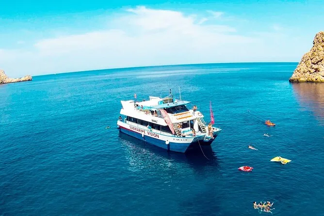 You’ll step aboard in San Antonio for a relaxed catamaran ride along Ibiza’s north coast—snorkeling gear ready, drinks flowing, and time to wander Cala Salada beach or try Mediterranean food at your own pace. Expect real local moments—a quick aquarium visit in a sea cave, laughter with your guide, maybe sticky fruit fingers—and plenty of space to just let go.