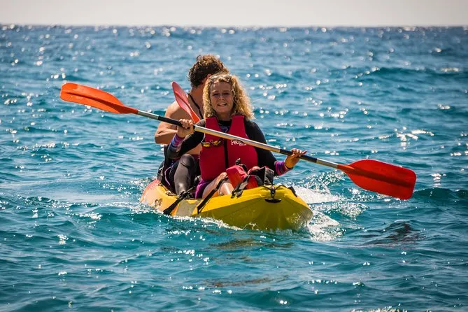 You’ll paddle from La Herradura beach along Cerro Gordo’s dramatic cliffs, slipping into sea caves and snorkeling over bright marine life with top-quality gear. Expect small groups led by local guides who know every cove—and moments of real silence broken only by your own laughter or a goat scrambling above you.