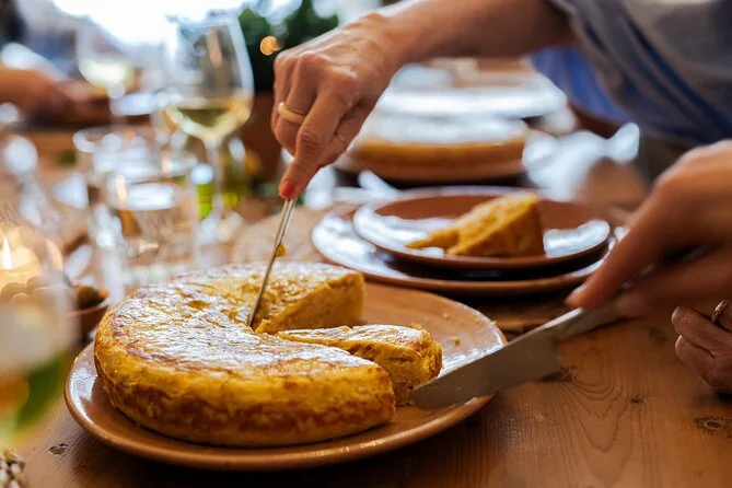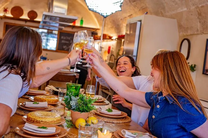 Your day includes hands-on guidance from local hosts inside a historic windmill kitchen, all ingredients and equipment for preparing four classic Spanish dishes together, unlimited drinks (open bar), plenty of food tasting along the way, plus time to sit down with your group over local wine after cooking—and you can request vegetarian options when booking.