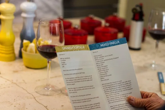 You’ll prepare sobrasada appetizer, authentic Spanish tortilla, mixed paella (adaptable), and Catalan cream dessert.