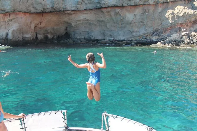 You’ll swim straight off the boat into El Perchel’s clear water for snorkeling surrounded by colorful fish, then dry off with homemade Canarian potatoes and fresh fruit under the sun. Local guides share stories as you cruise past ancient cliffs—expect laughter, salty air, and maybe a little sunburn if you forget your hat.