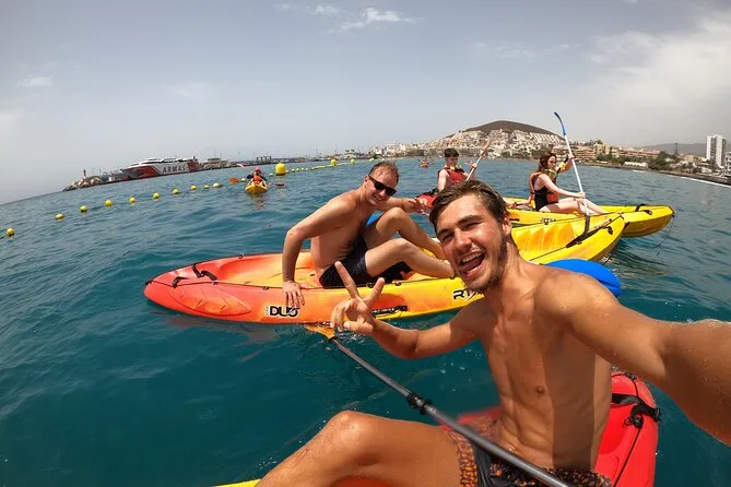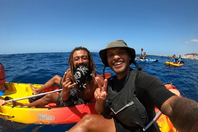 Your day includes use of all snorkeling equipment plus a professional local guide who leads both kayaking along Tenerife’s southern cliffs and guided snorkeling with turtles near PalmMar—just show up ready to paddle and swim before returning to Los Cristianos beach together.