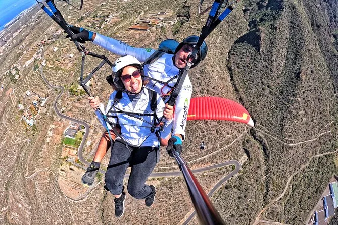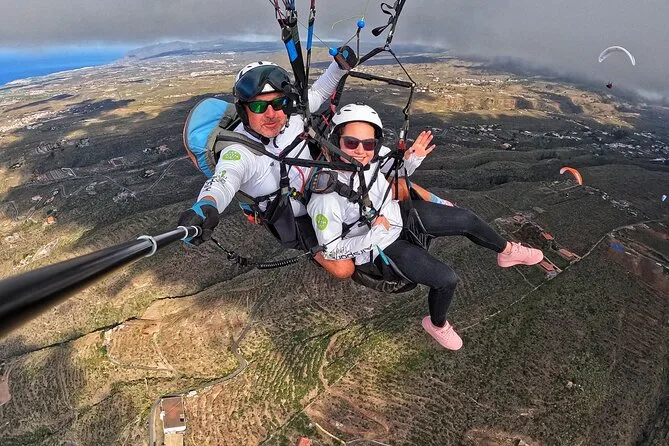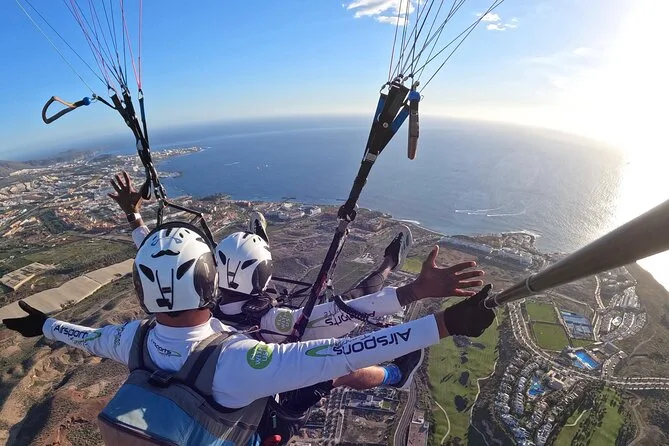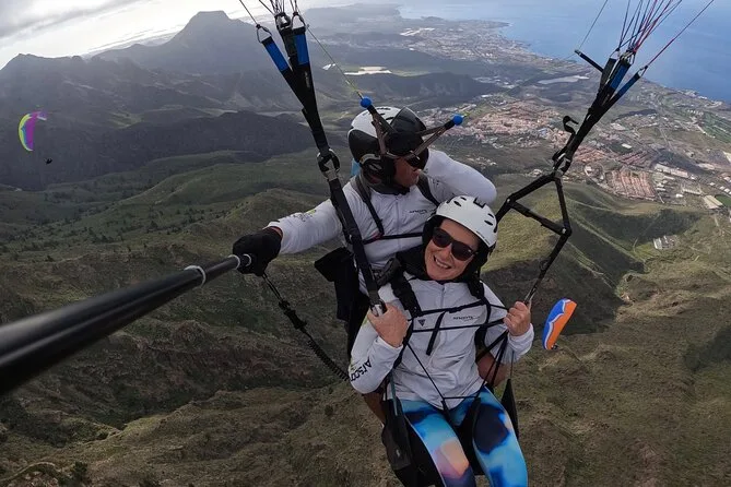 Your day includes free pickup within Costa Adeje, all necessary paragliding gear like harness and helmet, liability insurance, transport in an air-conditioned vehicle up to takeoff, plus guidance from experienced instructors throughout your tandem flight experience.