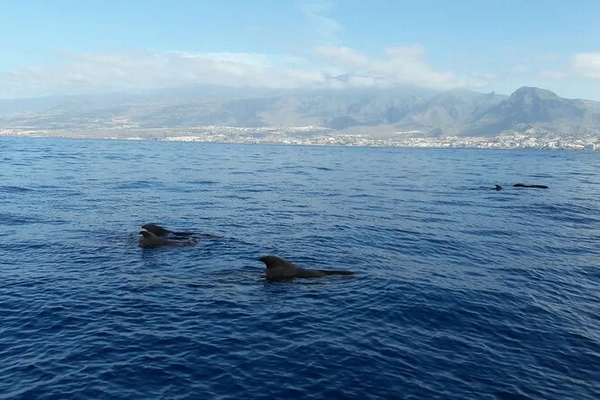 We drifted further from Costa Adeje than I thought we would — maybe three miles out, he said — and then just waited. There was this hush except for seabirds overhead and people whispering so they wouldn’t scare anything away. Snacks came out (fruit, little sandwiches), and honestly, eating while scanning for whales felt kind of surreal. At one point I caught this whiff of sunscreen and oranges together — weirdly comforting. Then suddenly everyone shuffled to one side: pilot whales right there, moving so quietly you almost missed them if you blinked.