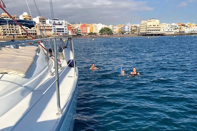 Your day includes hotel pickup within 20 km of Puerto Colón, sailing with a local guide and sailor crew, all snacks and drinks on board, use of snorkeling equipment at La Caleta de Adeje bay for swimming or exploring underwater life, plus return transfer back after your adventure along Tenerife’s southern coast.