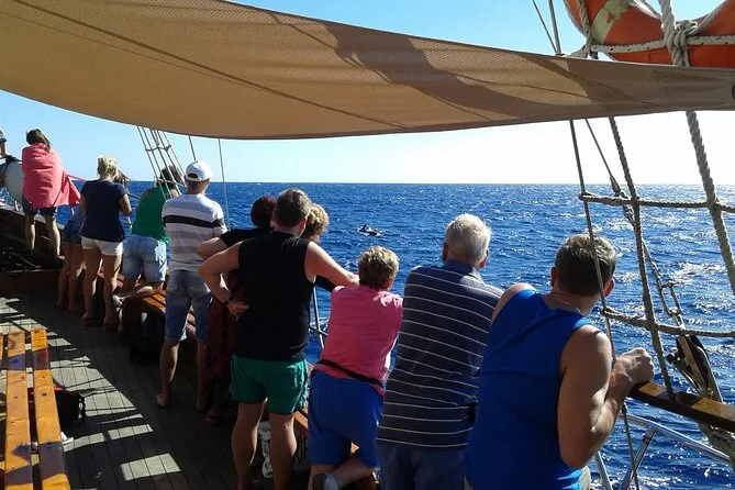 You’ll set sail from Los Cristianos on an old-style pirate ship with crew guiding you to find whales and dolphins along Tenerife’s coast. There’s time to swim in open sea (floats for kids), drinks onboard, and plenty of space to relax on deck or chat with locals. Expect real moments: wind in your hair, laughter over language slips, maybe even silence when those whales appear.
