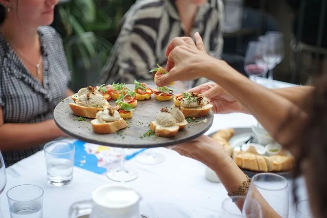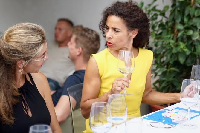 Your evening includes five artisanal Spanish wines poured by a Michelin-trained sommelier in central Valencia, plus classic Spanish snacks like jamón and olives alongside delicate petit fours — all within an accessible venue where laughter mixes easily with local stories before you wander back out into city lights.