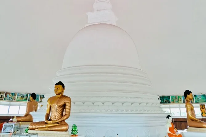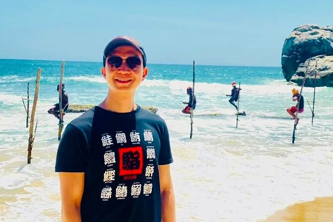 Lunch was right on Unawatuna Beach—plastic chairs in the sand, spicy curry that made my nose run (in a good way), waves crashing just meters away. We watched stilt fishermen balancing like tightrope walkers out in the surf; Sunil joked that I’d fall off in two seconds if I tried it myself. Maybe he’s right. On the way back we stopped at the Japanese Peace Pagoda—a little hush after all that color and noise—and just stood there watching evening clouds roll over Galle city. The drive home felt slower somehow.