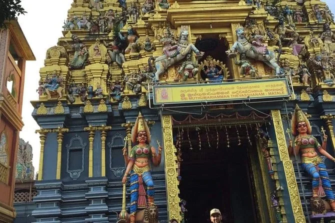 We were already halfway to Matale when our driver, Saman, slowed down so we could gawk at the Muthumariamman Hindu temple — all those wild colors and tiny sculpted gods stacked up like a fever dream. He grinned when I asked if people really count all the statues (he said nobody could). The air smelled faintly of incense even from the road, and I remember thinking it was way more lively than any temple back home. We didn’t go inside but just seeing it up close was a jolt — I kept craning my neck as we pulled away.