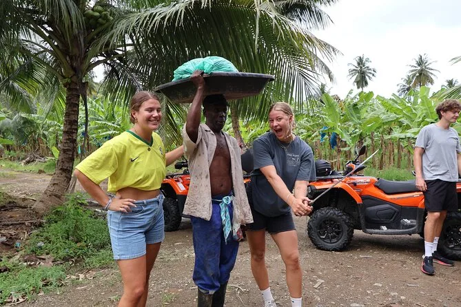 Your day includes helmet rental for safety, entrance fees to both the farm and waterfall stops if you choose the longer route, plus tastings of fresh produce like coconut or cocoa straight from Farmer Peter’s hands. You’ll also get access to Saint Lucia Distillers for rum sampling when available—and plenty of laughs from your local guide along every muddy turn.