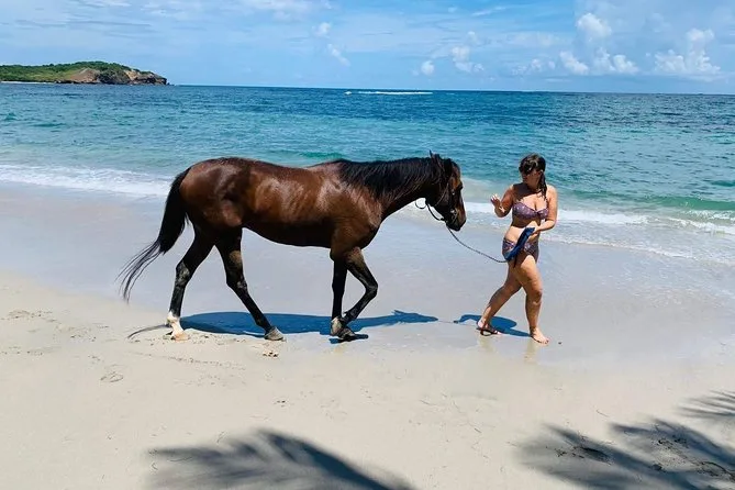 Private horseback ride on St Lucia’s quiet coastline with ocean swim option