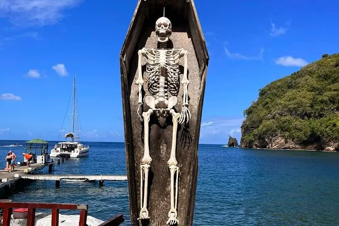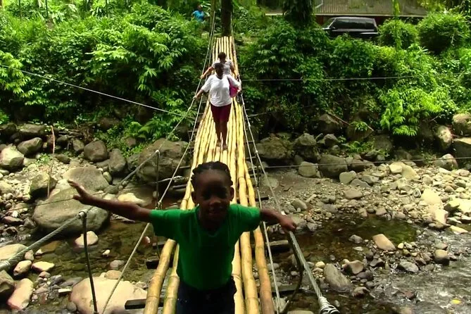You’ll walk through real Pirates of the Caribbean sets, cross a bamboo bridge to stand under Dark View Falls, and relax on Buccament Bay’s beaches—all with local stories and flavors along the way.