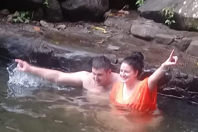 The drive up to Dark View Falls was all winding roads and bursts of green—banana trees everywhere, with tiny rain showers coming and going. You cross this wobbly bamboo bridge (hold onto the rail!) before reaching the falls. There are two cascades here; we soaked in the lower pool while the mist cooled our faces. The rainforest is thick and alive—birds calling out, leaves dripping from last night’s rain. Marcus shared how locals come here on Sundays with picnic baskets and homemade ginger beer.