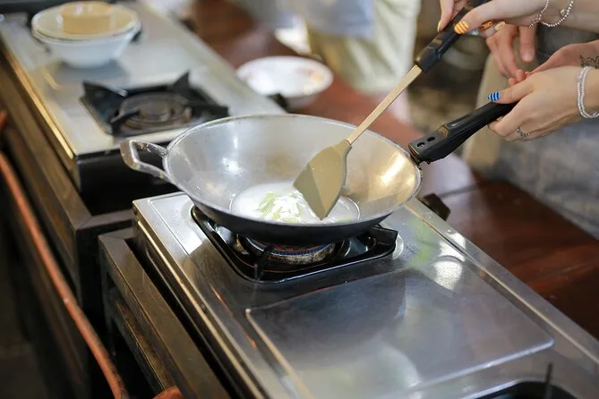 Your day includes all ingredients for four classic Thai dishes (with vegetarian or halal options if needed), guided local market tour for morning classes, use of personal locker, cold/hot drinking water throughout, professional chef instruction in English, printed recipes to take home—and plenty of time to taste everything fresh from your own wok before heading out again.