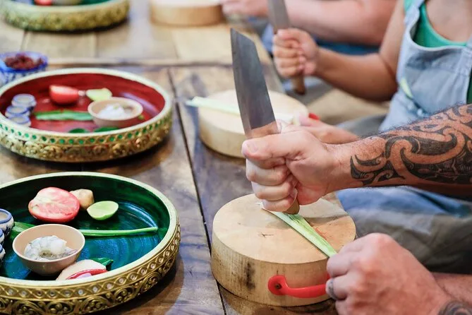 I’m still thinking about that first spoonful of green curry—spicy but not too much, coconut creamy, rice soaking up every bit. We all sat down together at a long table to eat what we made (four dishes each!), laughing about who burned their spring rolls or whose mango sticky rice looked “artistic.” If you do the afternoon or evening class instead of the market tour, you get to carve mangoes instead—I saw some masterpieces on display that made my attempt look like a potato.