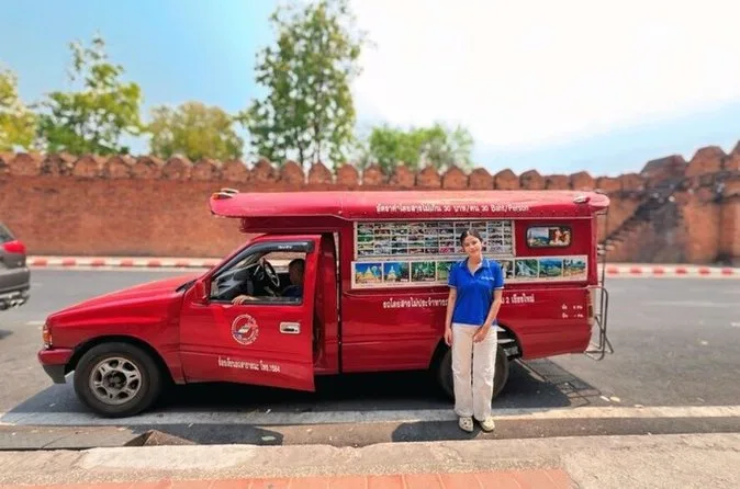 Your day includes pickup and drop-off within Chiang Mai’s old city walls, all rides in a classic red songthaew truck with open sides for fresh air (and local color), bottled drinking water along the way, plus guidance from an English-speaking local who knows every shortcut — so you can just focus on walking those trails and taking it all in.