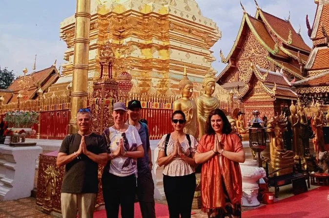 Your day includes hotel pickup in Chiang Mai (for eligible locations), an English-speaking local guide who leads you along the Monk’s Trail hike to Wat Pha Lat and then up to Doi Suthep Temple by classic red songthaew truck, plus bottled drinking water for along the way before returning you back at your hotel.