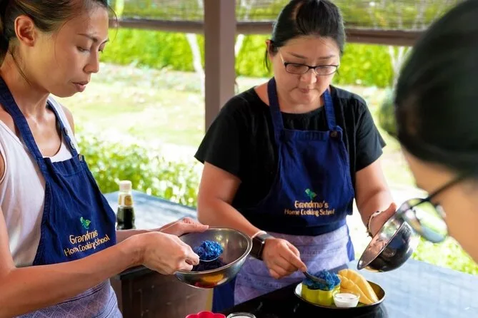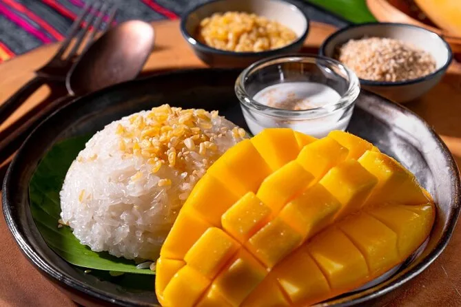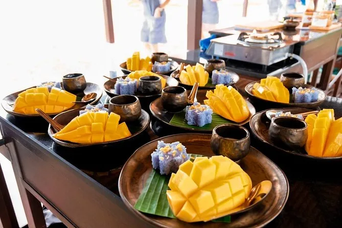 You’ll make four dishes such as Tom Yam or Tom Kha soup, Pad Thai noodles, a curry (green/red/Khao Soi), plus enjoy mango sticky rice dessert.