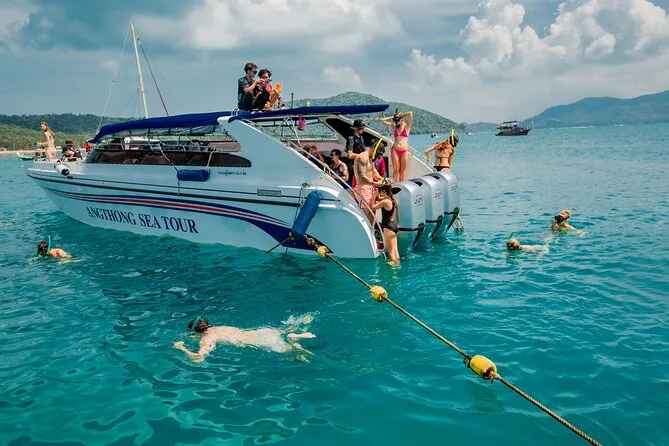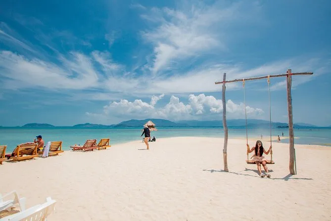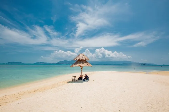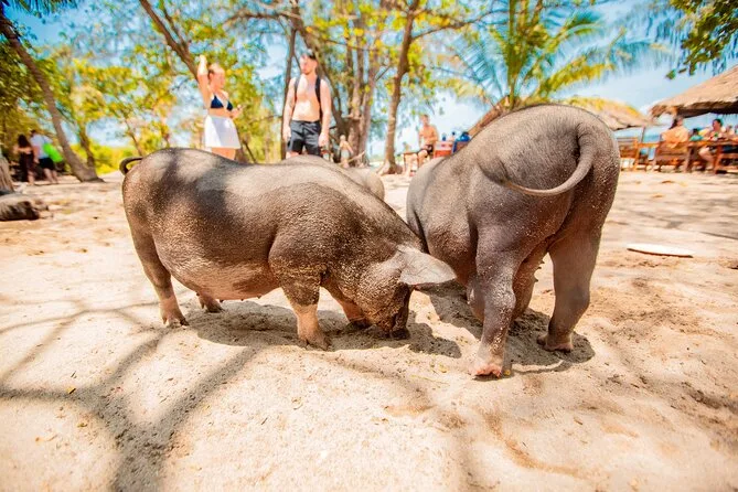 You’ll zip across turquoise water by speedboat from Koh Samui, snorkel at Koh Tan, then meet (and feed) the famous pigs of Koh Madsum. Kayak along quiet shores or just relax on soft white sand before lunch under palm trees with new friends. Expect laughter, salty air, and small surprises you’ll remember long after you leave.