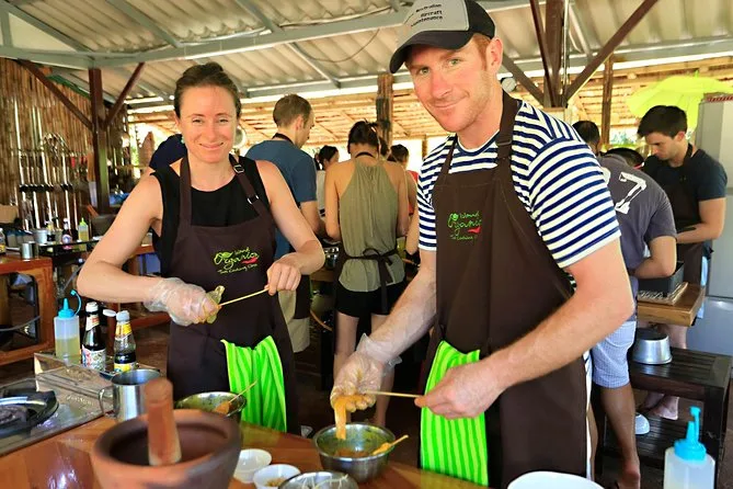 You’ll pick fresh herbs from an organic micro-farm on Koh Samui, learn to cook four classic Thai dishes with Chef Lat guiding every step, make your own curry paste and coconut cream, then share a relaxed lunch with new friends in an open-air kitchen. Expect laughter, honest flavors, and memories that linger long after you’ve left the island.