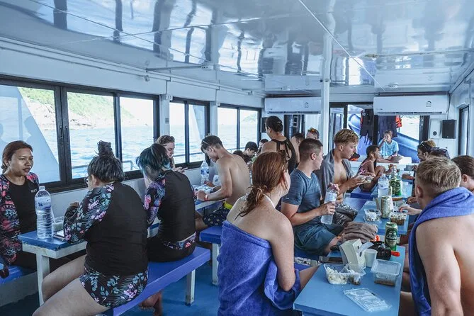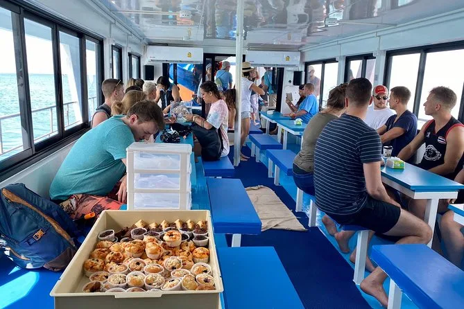 Your day includes free hotel transfer to the pier in Koh Tao, use of all snorkeling equipment you’ll need (mask, fins), insurance coverage throughout the trip, lunch boxes with sandwiches plus fresh fruit served onboard along with snacks and drinks like water or coffee or tea—and friendly multilingual guides who make sure everyone feels welcome before returning you to your accommodation by evening.