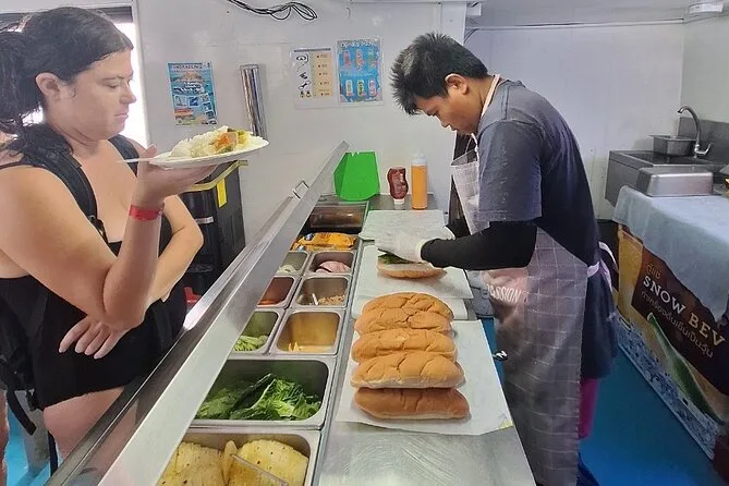 Between stops like Aow Leuk and Hin Wong Bay, some folks tried the climbing wall or slid straight into the water off the back of the boat. Honestly, I just sprawled out on one of those floating sun beds for a while—felt like drifting in a dream. Lunch came in little boxes: sandwiches and fruit, nothing fancy but somehow perfect after swimming so much. May pointed out Mango Bay as we cruised by; she said her uncle used to fish there before tourists started coming. She laughed when I tried to say “thank you” in Thai—probably butchered it.